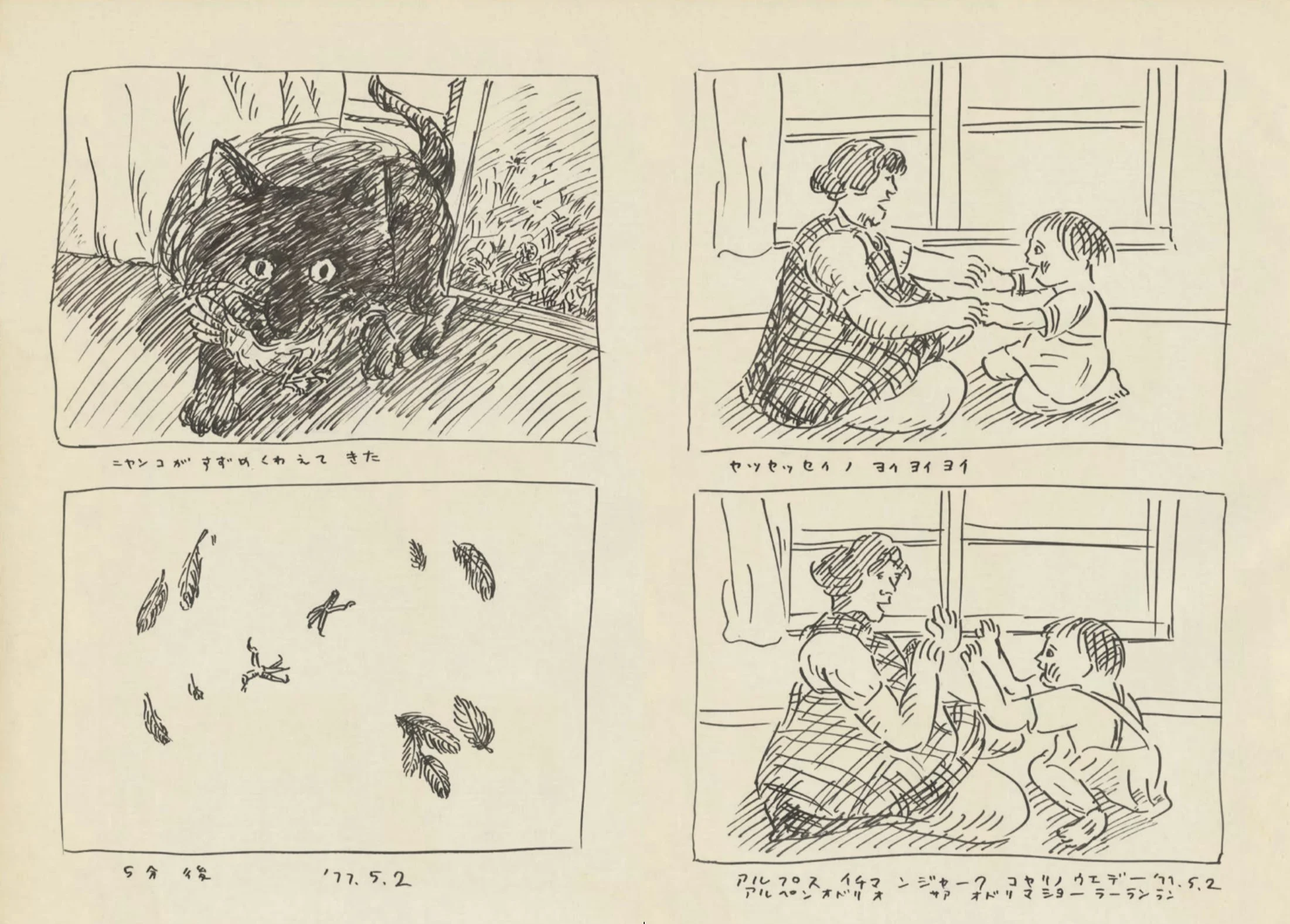 「どんづまりだった」父は、娘が世界と出会うその過程のすべてを記録しようとするかのようにノートを描き続けます。